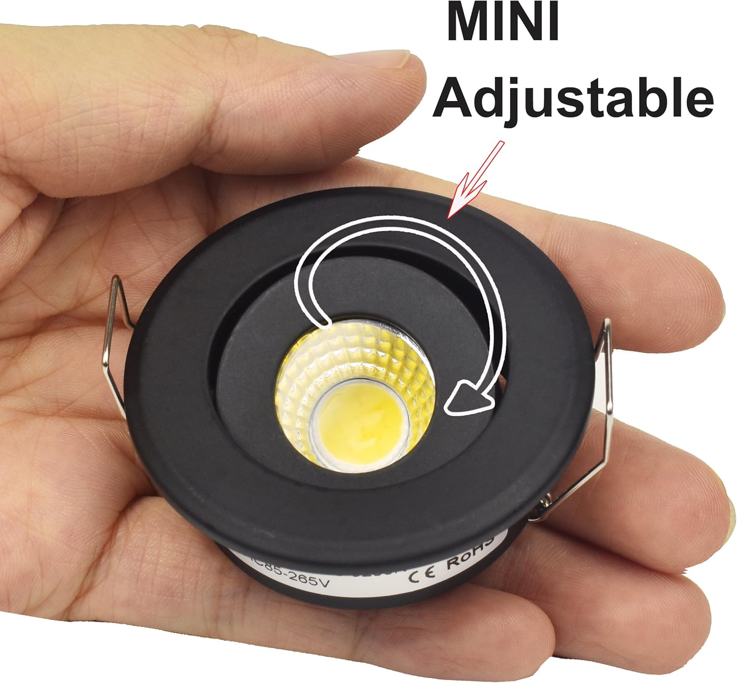 Item: COB LED Downlights Power consumption: 3W LED Chips: Epstar Input Voltage: AC85-265V(Available for Unites states 110V) Color Temperature: Warm White: 3000k Body Color: Black Lumen:270-300LM Beam Angel: 60 degree Life: 40,000hrs Warterproof Rating: IP40( indoor use only) Working temperature:-20to +50 Color Rendering Index(CRI): Ra>80 Power Efficiency: 84% Material: FULL Aluminum No RF Interference, No mercury, No flasing Support customize service, please contact us