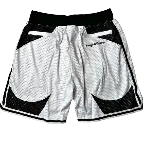 Get ready to showcase your love for basketball with these stylish Headgear Classics Lower Merion High School shorts featuring the legendary Kobe Bryant's number 33. Made from fully lined breathable mesh fabric, these shorts are designed for maximum comfort and style, whether you're on the court or hanging out. Key features include:- Authentic sports design with 'LOWER MERION' and '33' prominently displayed in embroidery - Lightweight and breathable material for all-day wear (100% Polyester)- Perfect for both casual and athletic activities- Elastic waistband with drawstring for adjustable fit- Classic black and white color scheme- Two side and two back zipper pockets for convenience Elevate your game while paying homage to an NBA icon!Brand new with tagsMen’s size XLMeasures approx lying flat in inchesWaist 15.5Rise 13.5Inseam 8*colors may appear slightly different in person due to lighting, screen resolution, etcNo trades